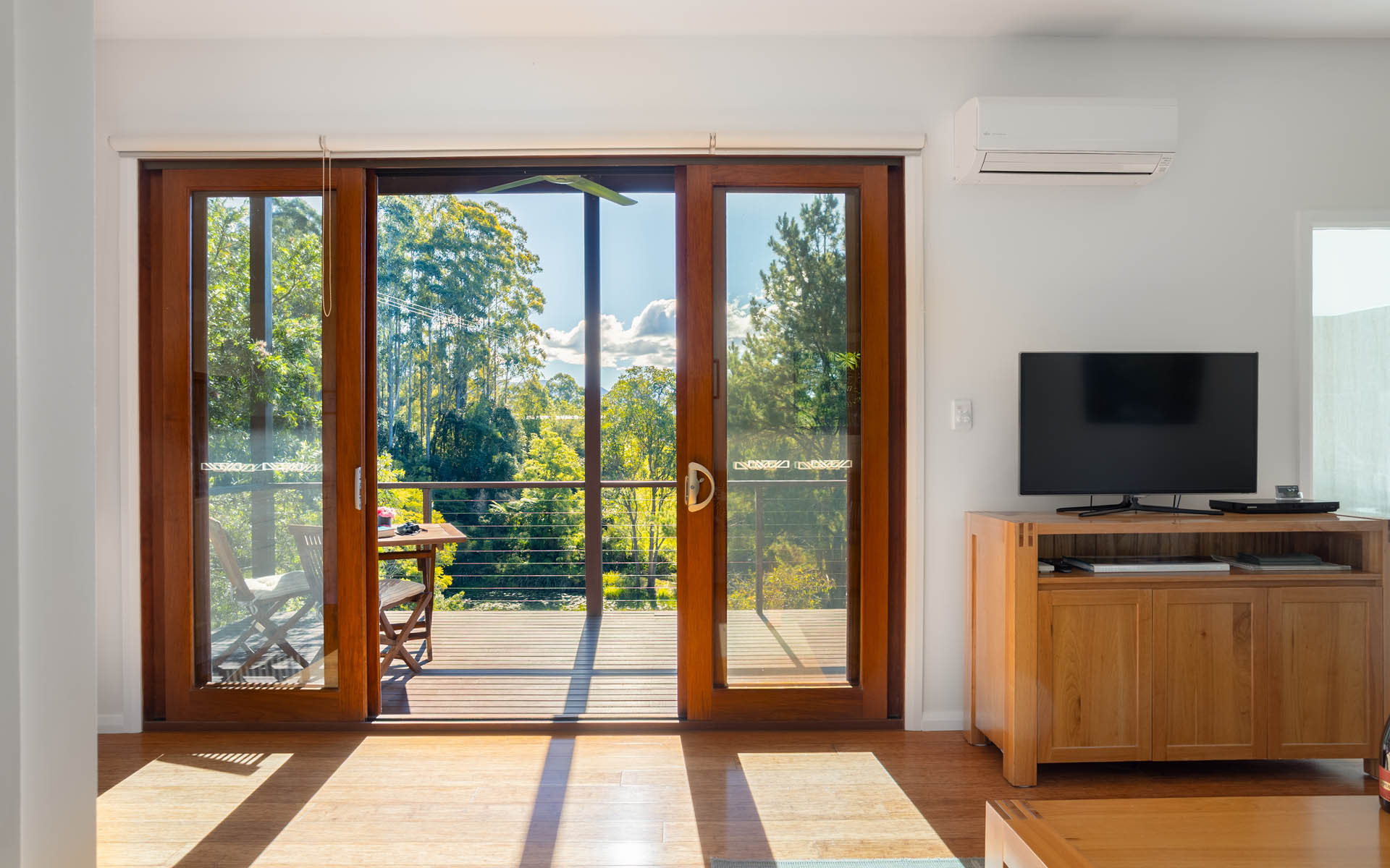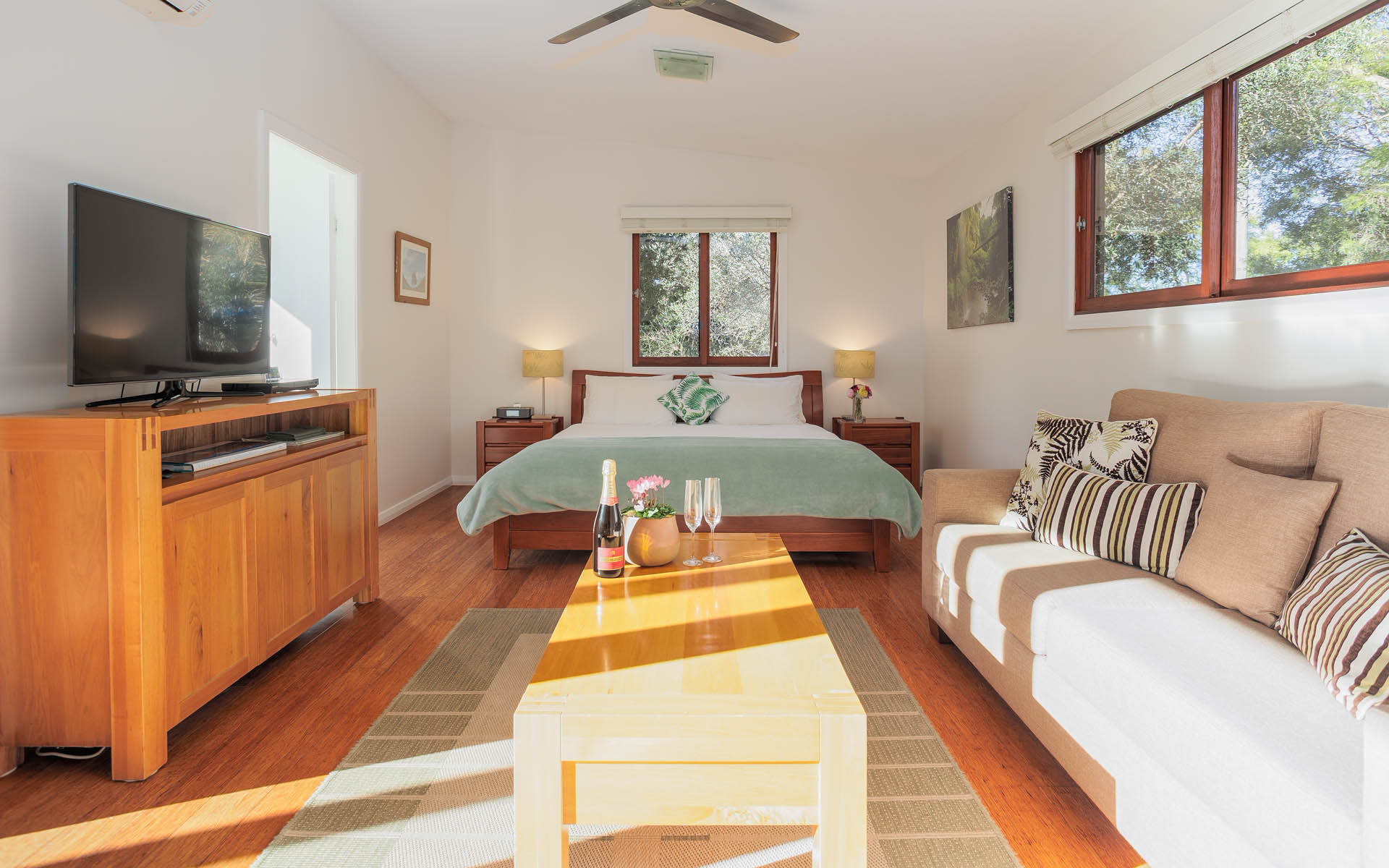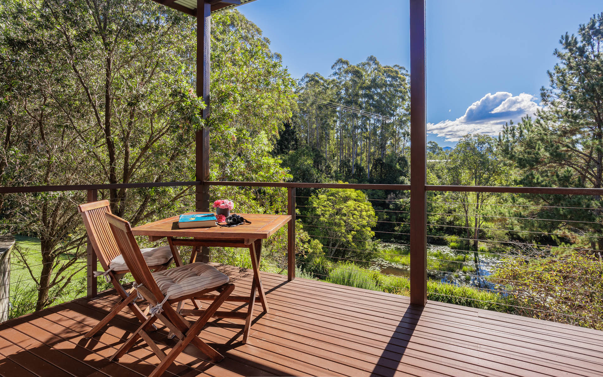 Cozy, peaceful and comfortable, Lily cabin is the first cabin you get to as you come up the driveway. Configured with the lounge looking out across the balcony views, and the bed adjacent to the bathroom, this cabin is perfect for afternoon relaxation with a view. From the balcony you look out over both of our lilyponds to the mountains beyond.